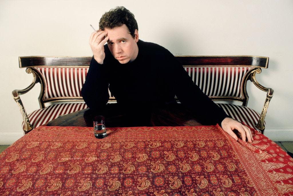 Happy here. Throwing parties. Making headway on the book. Plus he was living with his boyfriend Jim — whose career, as a lawyer, demanded a closet more opaque than Ellis’ own. And so the relationship was low-key. Intimate. Partly because that’s what gay men of their generation simply decided was the safest thing to do, under the specter of AIDS; but he was also living this way because — remiss as he might have been to say it at the time — it’s what he “always wanted.” In public he needed to sustain this image as the spokesperson for transient, fluid, detached experimental sex. But really, as he said in a 2024 podcast episode, all he ever wanted was “to have sex usually with the same person, in a nice bedroom, after we’d taken showers.”